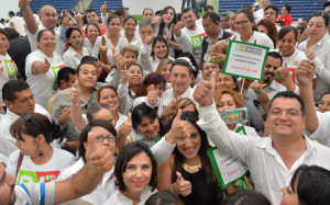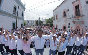 La calle 17 desde Carrera Torres hasta Hidalgo fue pintada de azul por los victorenses que se mostraron convencidos que el único cambio lo encabeza el abanderado del PAN a la Presidencia Municipal y Francisco Cabeza de Vaca, próximo gobernador de Tamaulipas