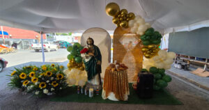 Desde temprana hora, comerciantes y visitantes comenzaron a congregarse frente al histórico inmueble, donde se colocó un altar adornado con veladoras, globos verdes y blancos