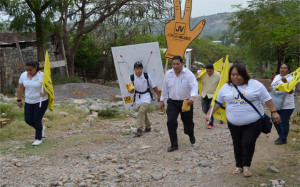 Caminando por empinadas colinas con calles sin pavimentar y con difícil acceso, el abanderado del PRD dejó en claro que llegará hasta el último rincón del territorio tamaulipeco