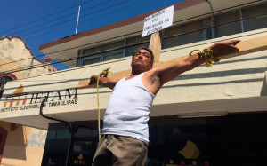 Sebastián Domínguez Silva se crucificó afuera del Consejo Estatal en protesta por no tener la candidatura