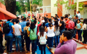 Más de ochenta alumnos de la Unidad Académica Multidisciplinaria de Educación y Humanidades se manifestaron por el recorte de 7 días inhábiles