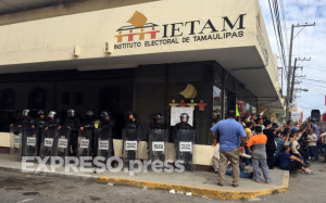 Nueve elementos de la Secretaría de Seguridad Pública llegaron a instalarse a un costado del Consejo General del Instituto Electoral de Tamaulipas