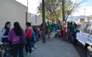 Cientos de jefes de familia formaron una fila en el exterior de la Secundaria Técnica número 1; tendrán que soportar las inclemencias del tiempo de este fin de semana largo con tal de inscribir a sus hijos