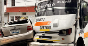 Presuntamente el coche en que viajaban dos jovencitos omitió el alto y fue prensado contra un poste por la unidad de pasajeros