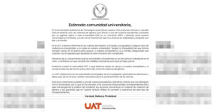 A través de un comunicado en sus redes sociales, la UAT informó que colaborará con las autoridades encargadas de la investigación
