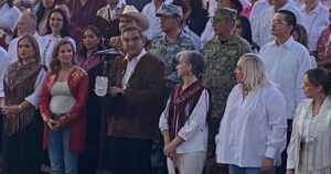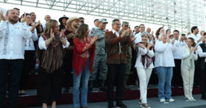 Acompañado de María de Villarreal, presidenta del DIF Tamaulipas, Yolanda Cepeda Echavarría, Secretaria de Turismo de San Luis Potosí, estado invitado a la feria este año, así como alcaldes del estado, secretarios, mandos militares, legisladores locales y federales, representantes de la sociedad civil y cientos de familias, el mandatario convocó a reafirmar la identidad como tamaulipecos.
