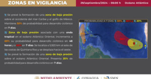 Al momento se monitorea una nueva área favorable para actividad tropical al Oeste del Mar Caribe cerca de la Península de Yucatan con un 50% de probabilidad de desarrollo a ciclón tropical