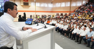 Durante la develación del monumento a Catarino Garza en Matamoros, el gobernador destacó los apoyos que brindó López Obrador a Tamaulipas.