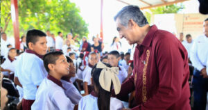 El gobernador, Américo Villarreal Anaya, acompañado por la presidenta del DIF Tamaulipas, María de Villarreal dio el banderazo al nuevo ciclo escolar 2024-2025 en Jaumave.