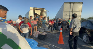En menos de una hora, un contenedor cargado con 20 toneladas de pierna de cerdo de primera calidad fue vaciado por una multitud