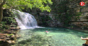 La primera foto, capturada el pasado fin de semana, muestra las cascadas en todo su esplendor