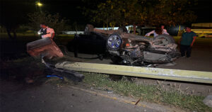 Vaya susto que se llevó un grupo de jóvenes que volcaron por la madrugada en Fidel Velázquez y Olivia Ramírez