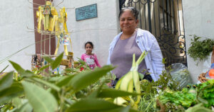 Sandra de la Cruz comercializa desde hace cuatro décadas las tradicionales palmas, actividad que es una tradición familiar.